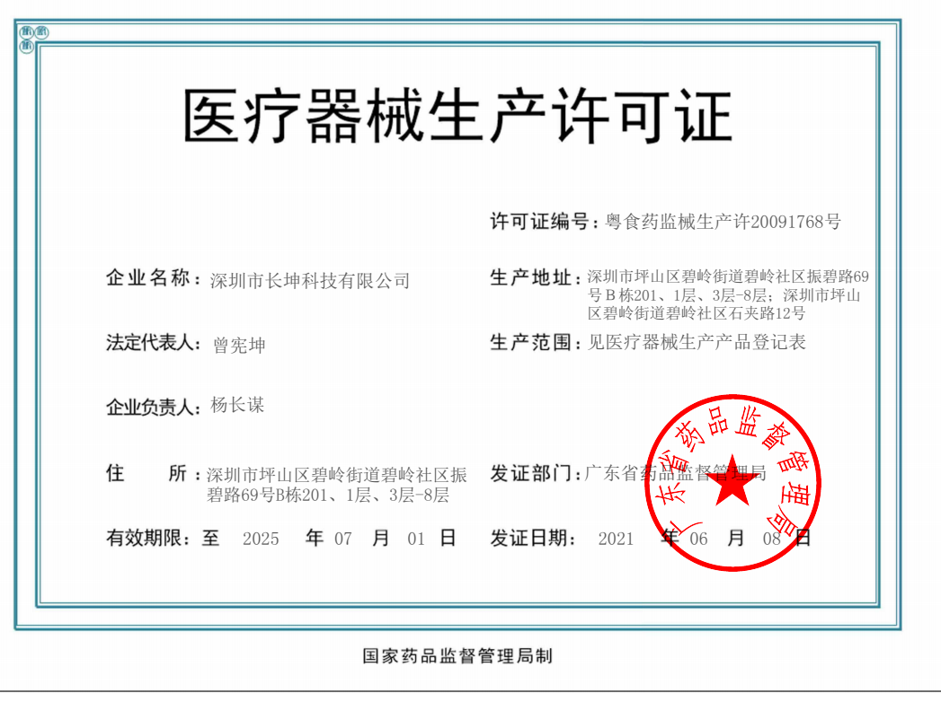 中文版|ENGLISH 服務(wù)熱線:0755-29100487 歡迎來到深圳市長(zhǎng)坤科技有限公司官網(wǎng)!      粵深食藥監(jiān)械經(jīng)營(yíng)備20151166號(hào)      粵食藥監(jiān)械生產(chǎn)許20091768號(hào)